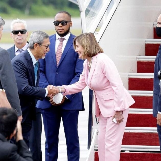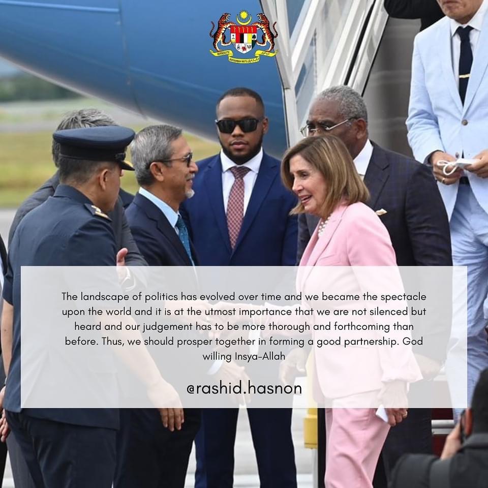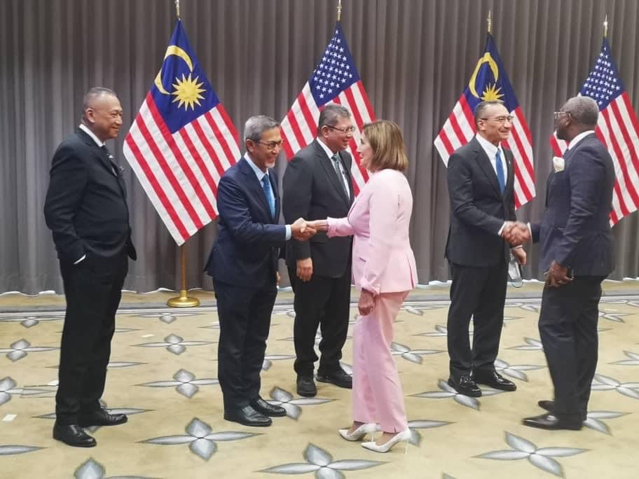 Mme Pelosi a été accueillie par l'ambassadeur des États-Unis en Malaisie, Brian McFeeters, et par Dato Hj Mohd Rashid Hasnon, président de l'Organisation mondiale des femmes et du Parlement de Malaisie.